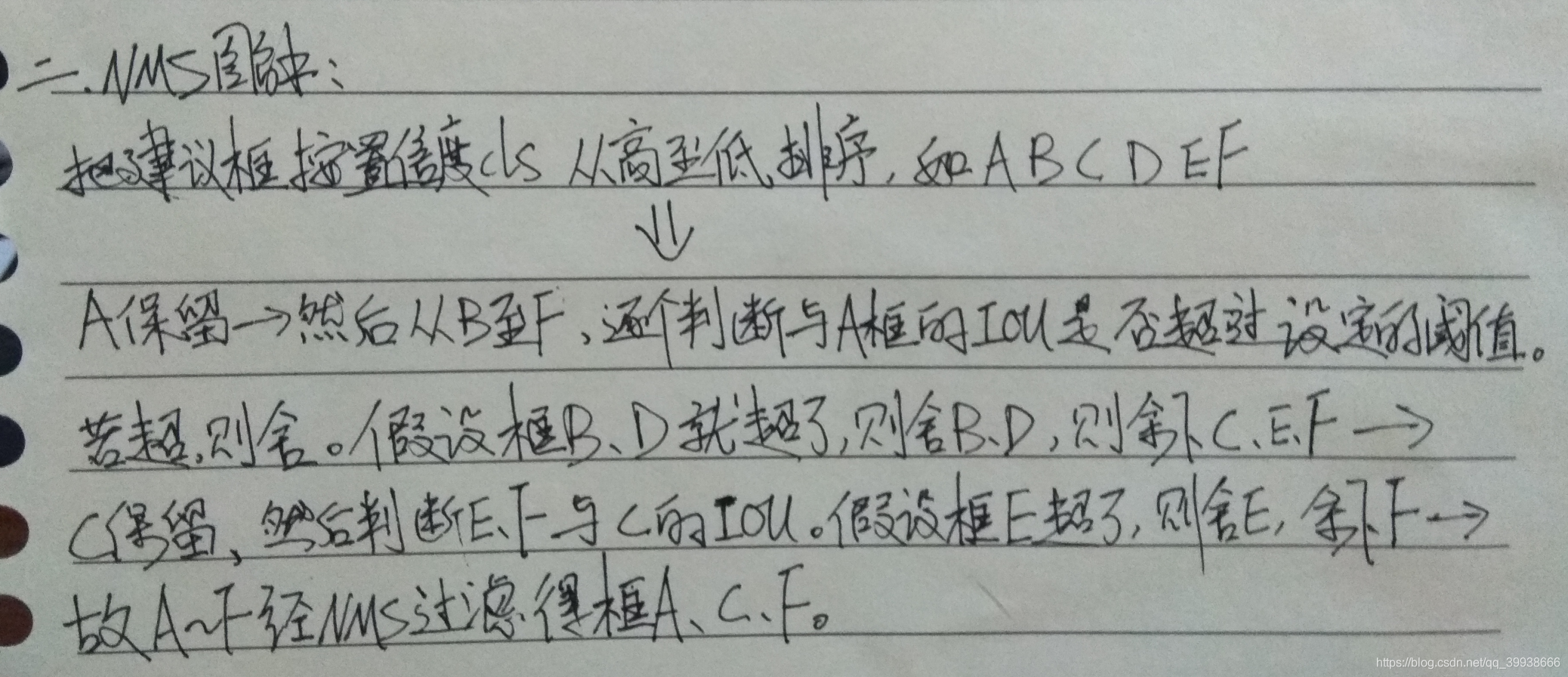 比如一张70*70的图,经过P网全卷积后,输出为(70-2)/2 -2 -2 =30,即一个5通道的30*30的特征图。这就意味着该图经过p的一次滑窗操作,得到了30*30=900个建议框,而每个建议框对应1个置信度cond与4个偏移量offset。再经nms(非极大值抑制:通过iou,把不是极大值的值全都杀掉)把cond大于设定的阈值0.6对应的建议框保留下来,将其对应的offset经边框回归操作,得到在原图中的坐标信息,即得到符合p网的这些建议框了。之后再传给R网。