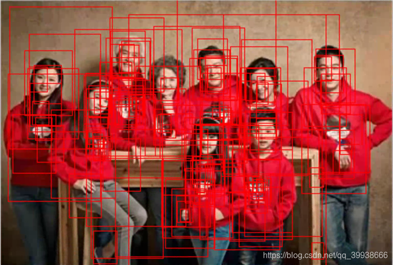 输入任意大小的图(min(w,h) >= 12),img转data并升到4维——>经 _cls, _offest = self.pnet(img_data)得置信度与偏移量,取置信度大于阈值0.6的,得到经边框回归(平移、缩放的逆操作)操作后,即原图的人脸附近可能的预测框坐标集合p_boxes.append